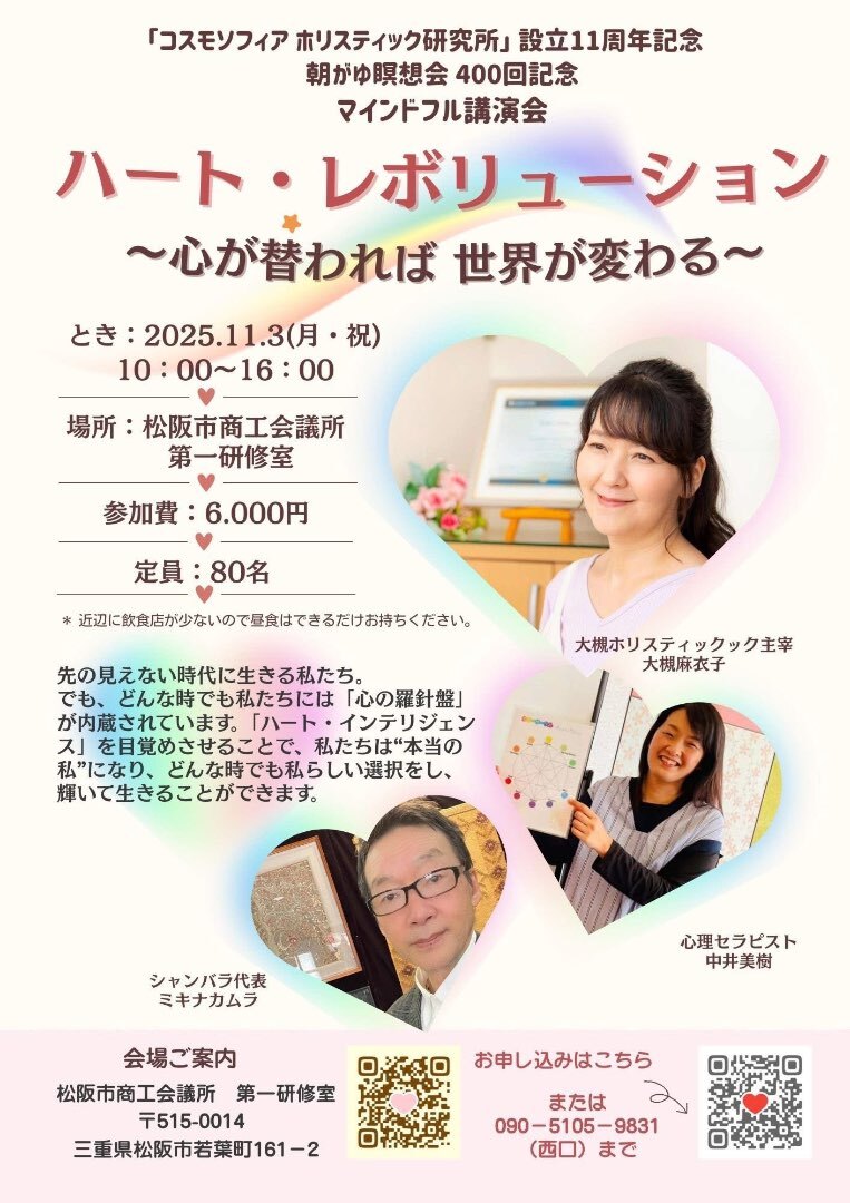 11月3日に松阪市で開催されました「コスモソフィア・ホリスティック研究所